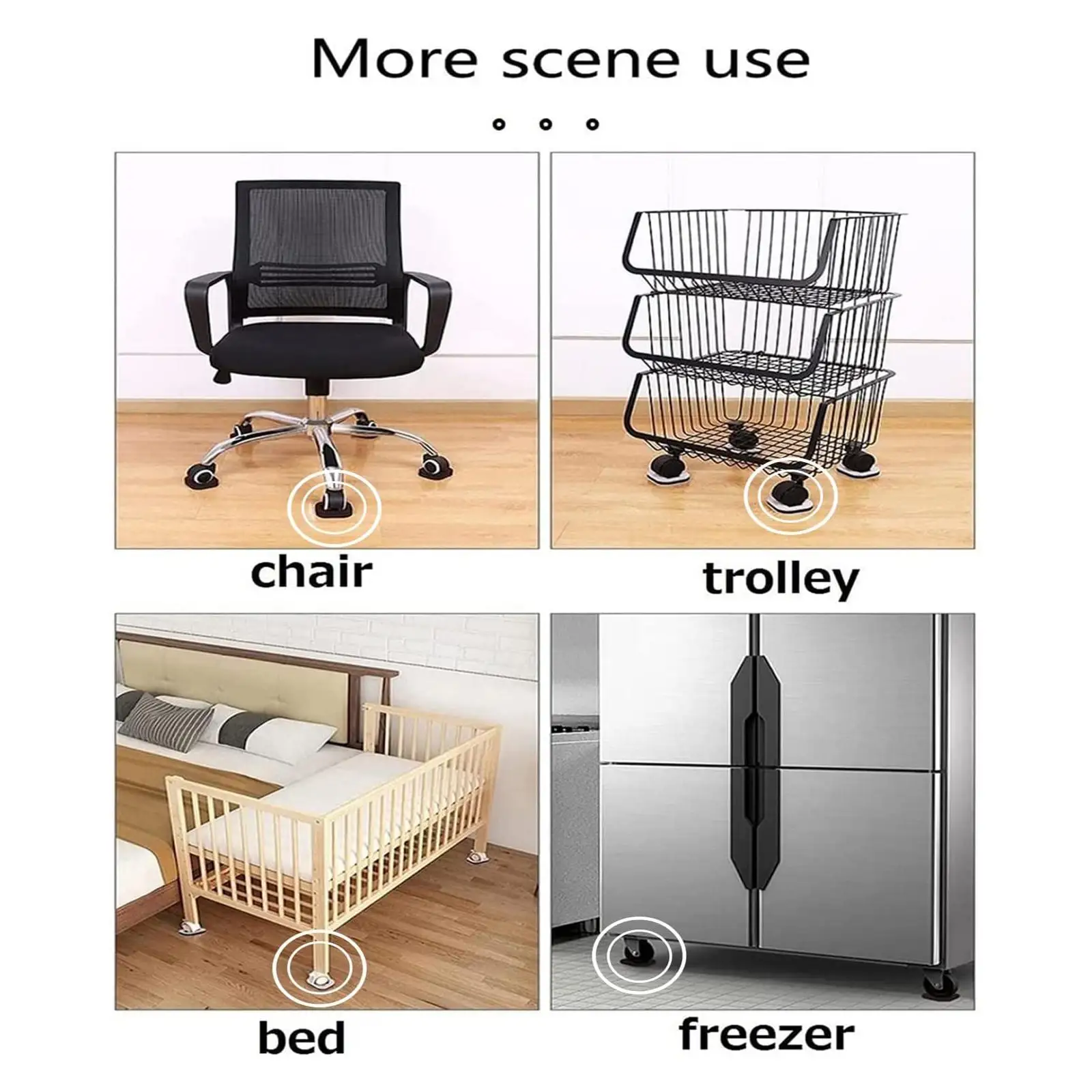 b, Never again hear the annoying scraping sound of a chair or table with wheels moving across your hard surfaces
